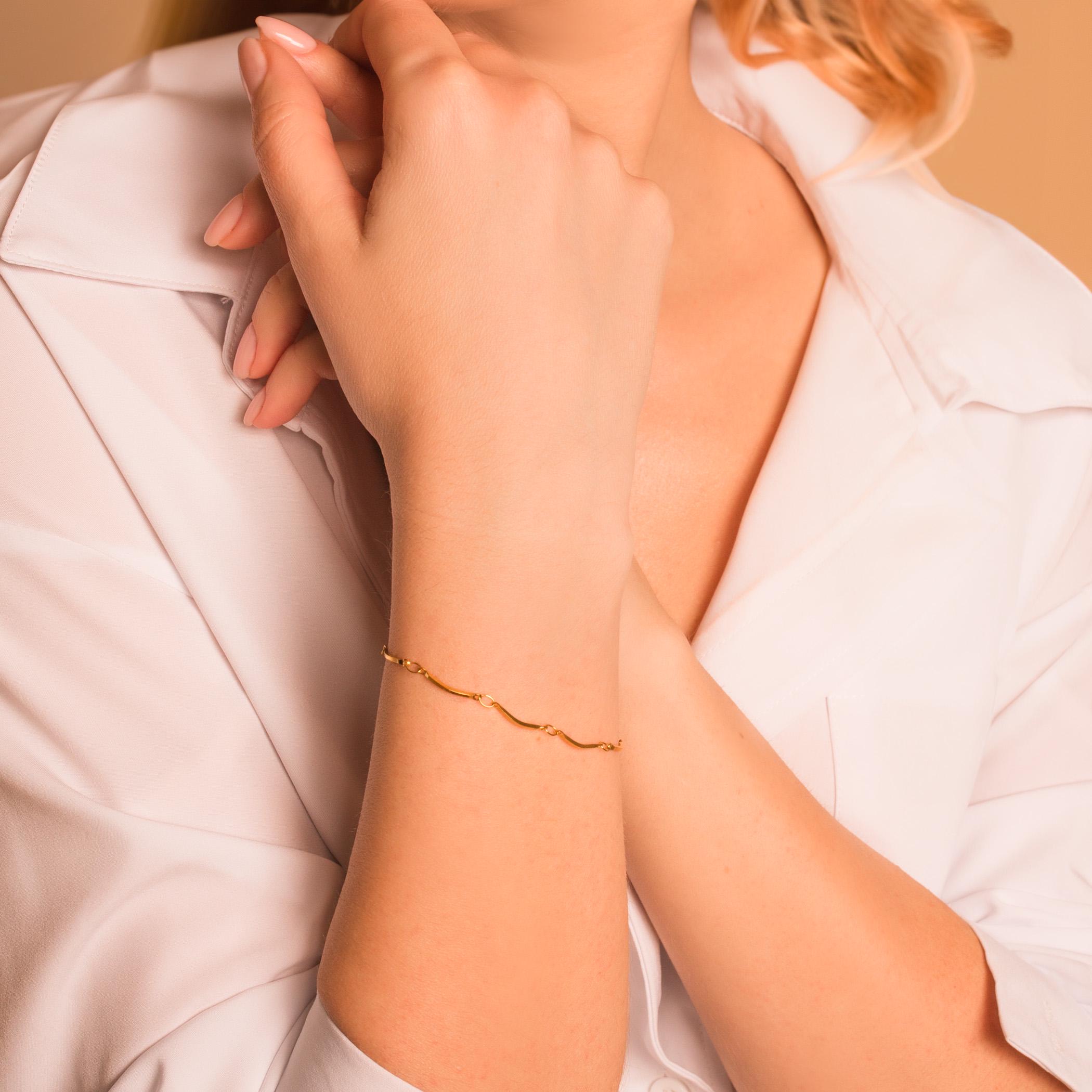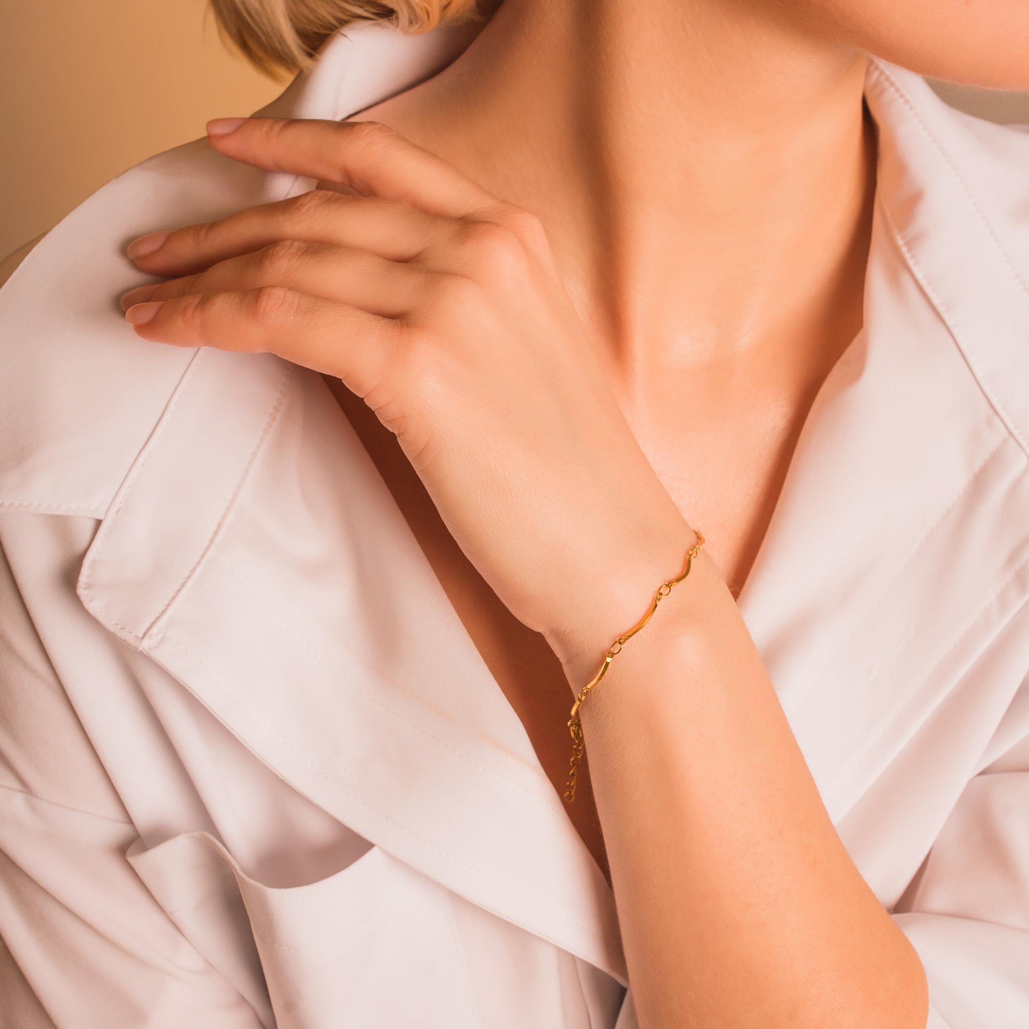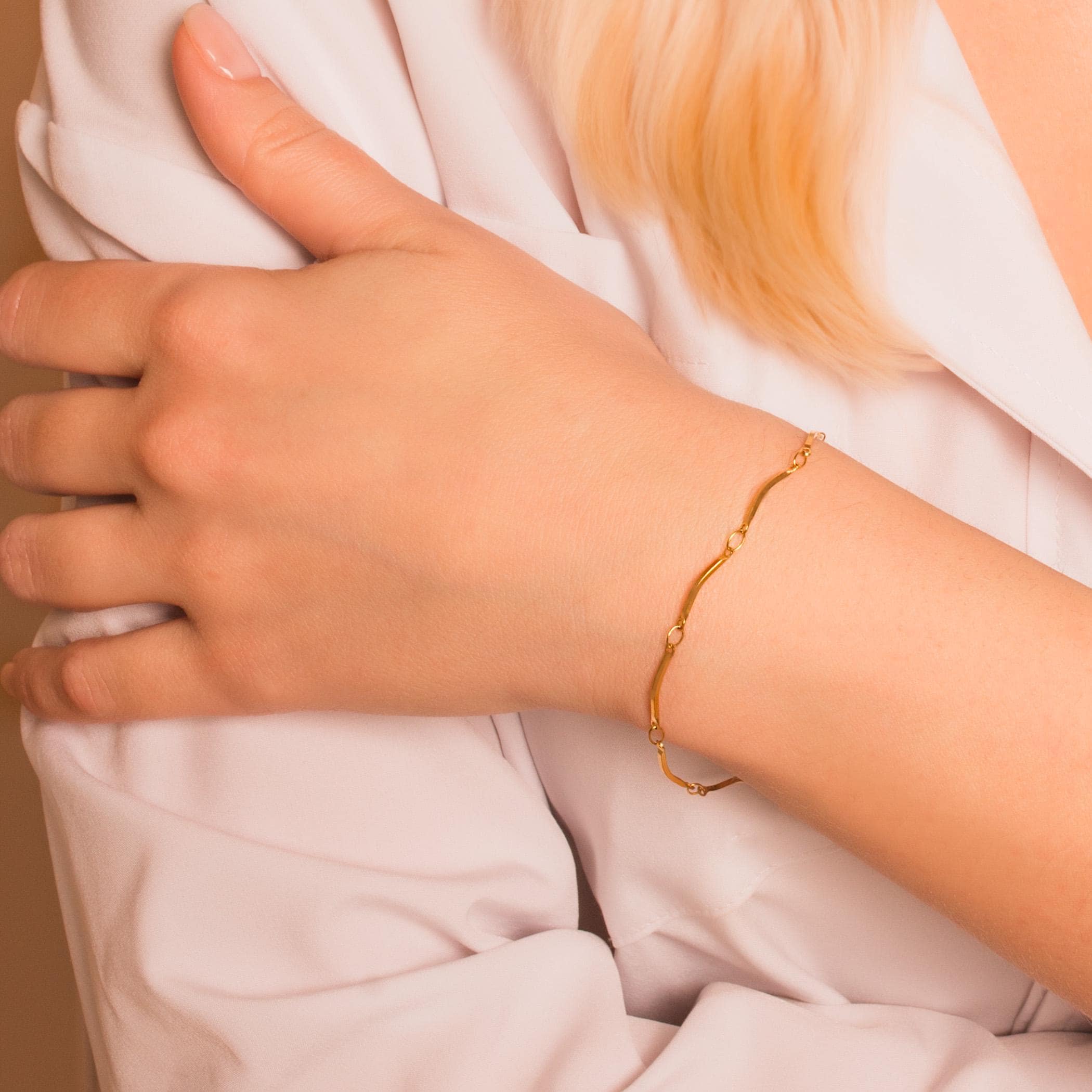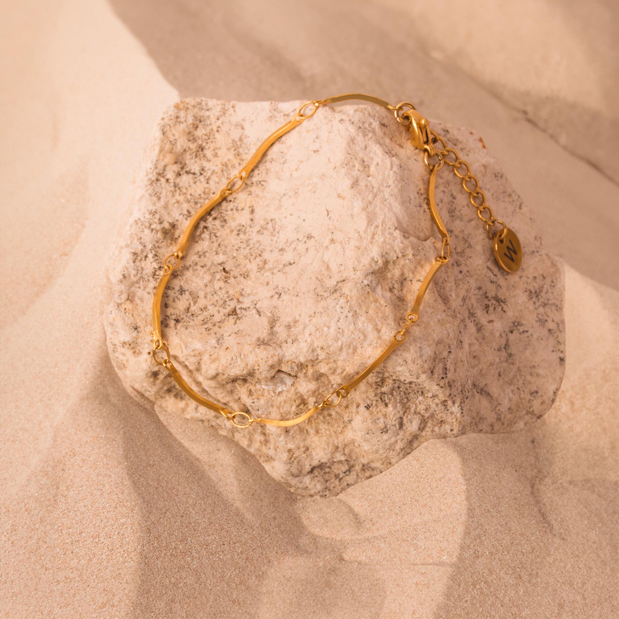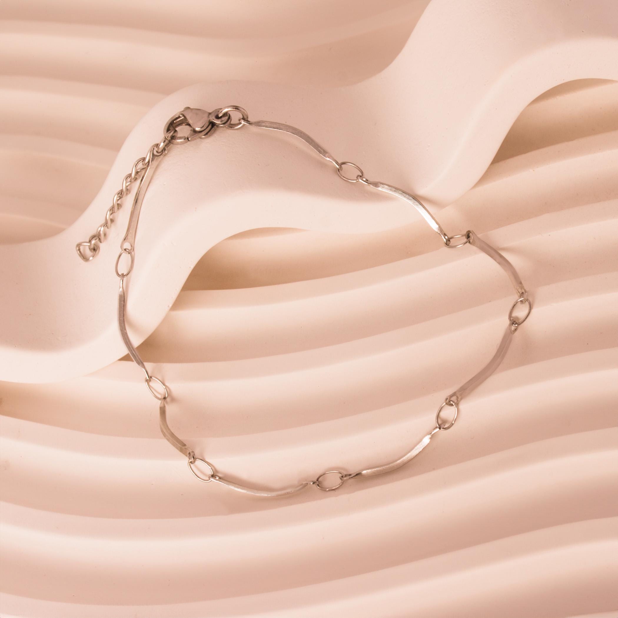 Dainty Curved Bar Chain Bracelet • Personalized Chain Bracelet in Stainless Steel • Waterproof and Tarnish Resistant Everyday Bracelet