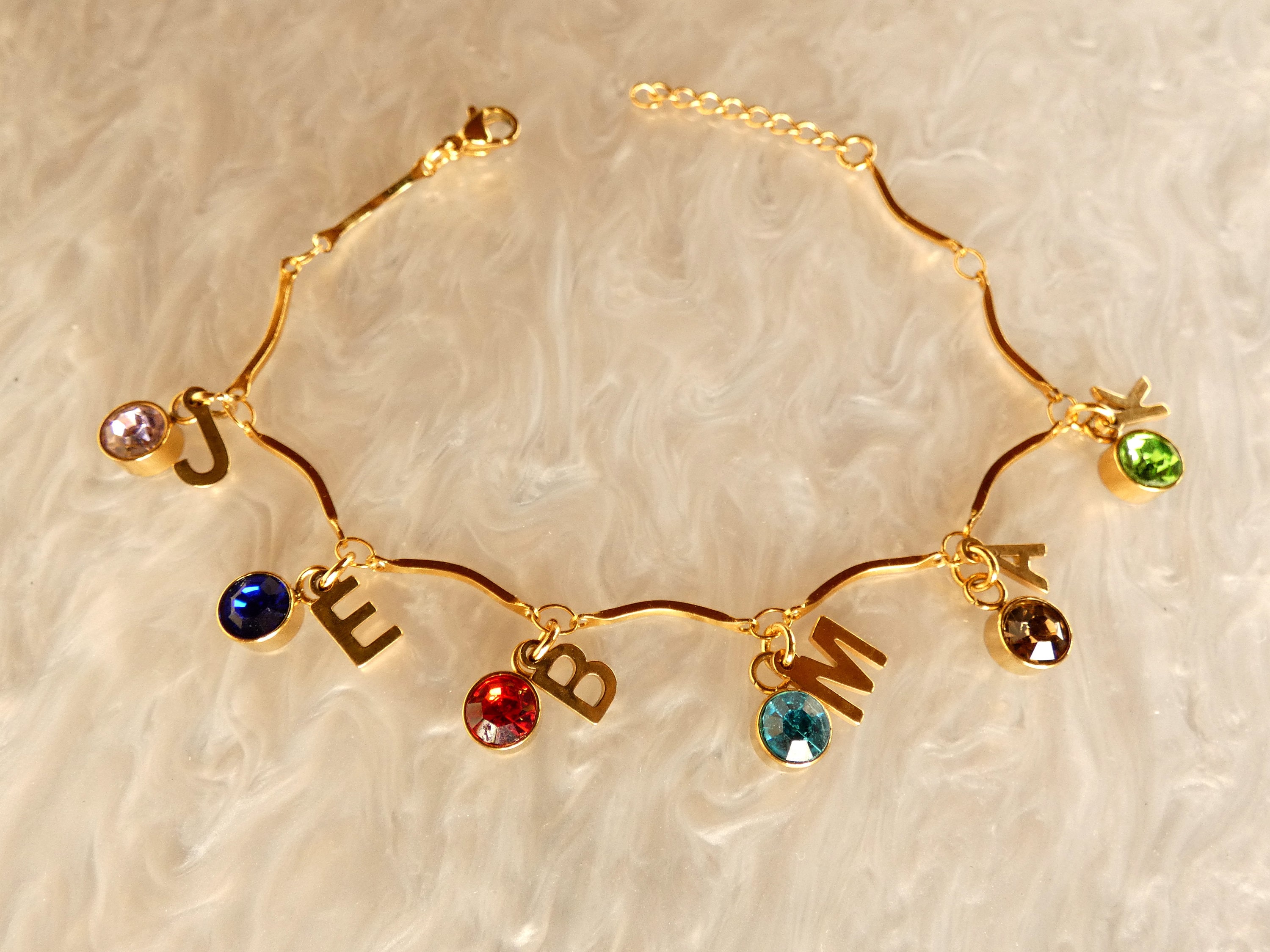 Such a beautiful bracelet! The details with the initials and birthstone is so meaningful. I received one as a gift and decided to get one for a Mother’s Day gift as well. Marie was great helping me with sizing. Shipping was extremely fast too! Overall, definitely recommend. 5 stars ⭐️