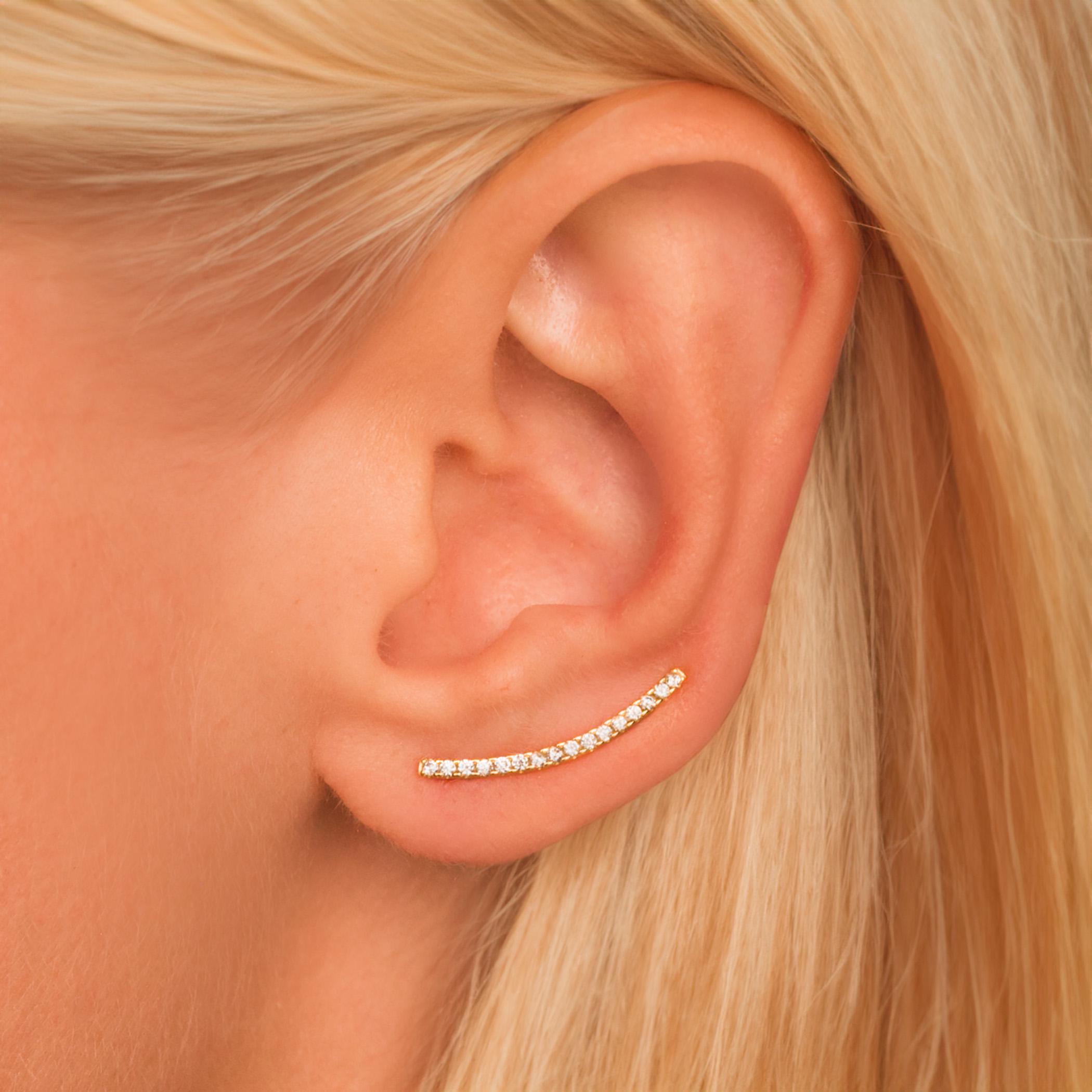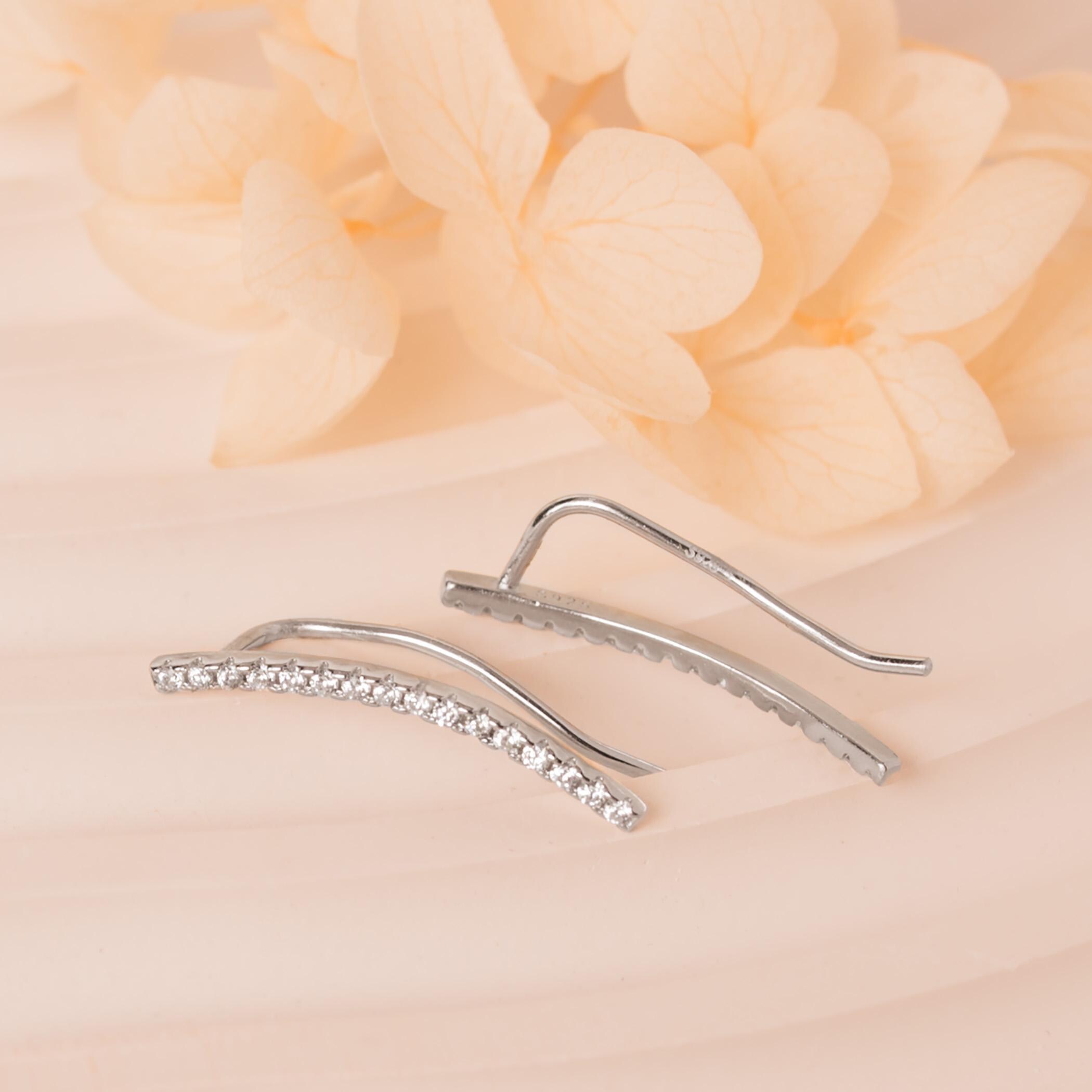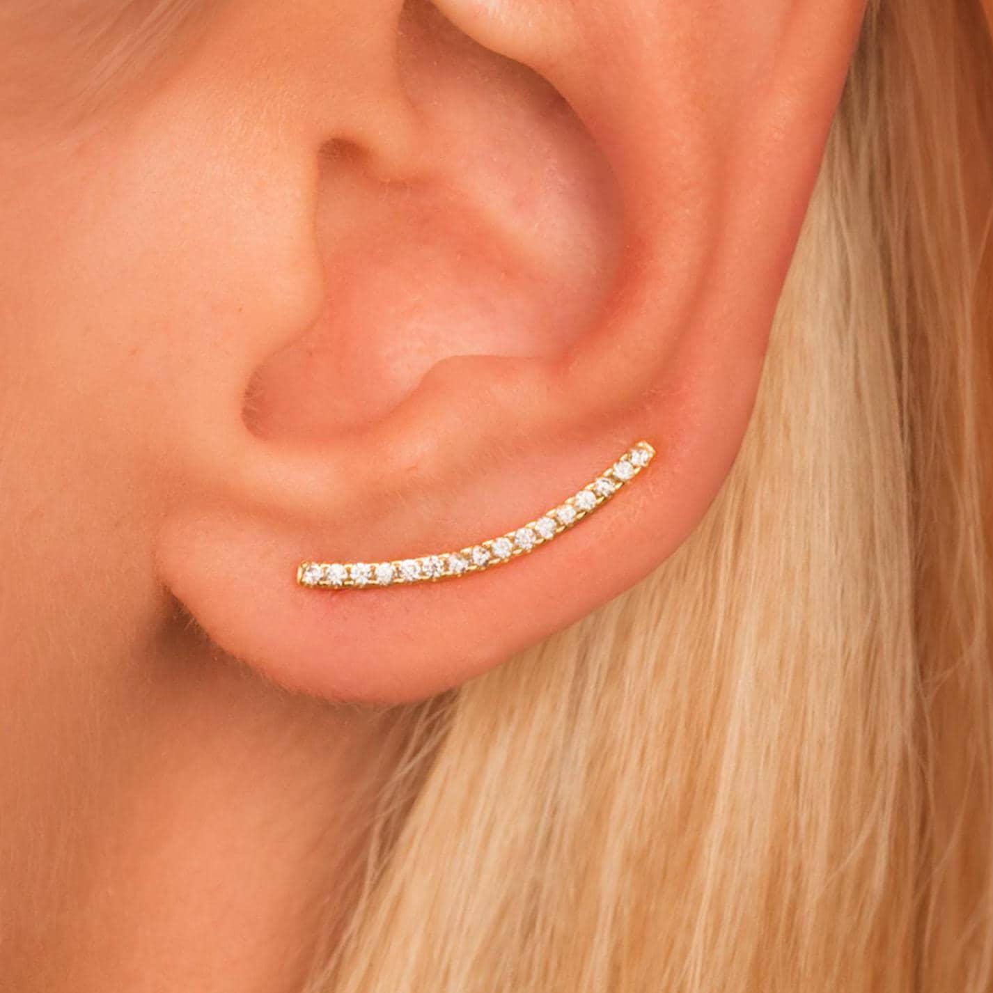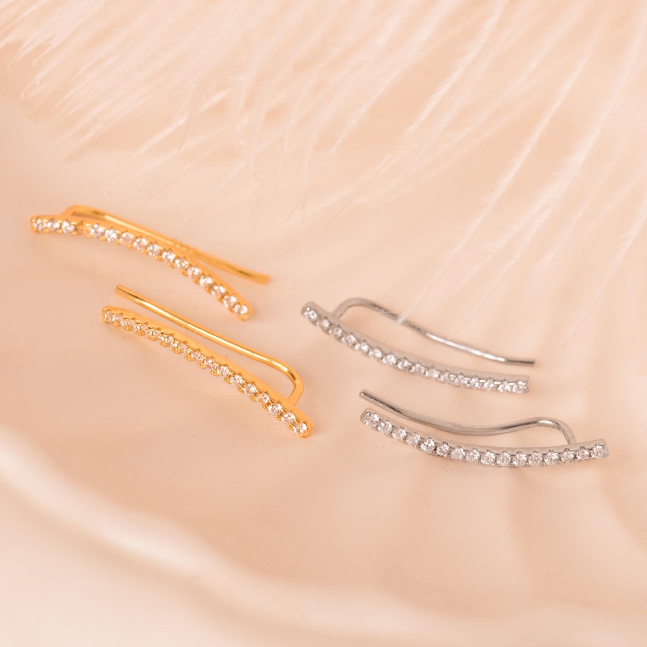 Dainty Thin Climber Earrings • Pave Ear Crawler • 18K Gold Vermeil or Sterling Silver