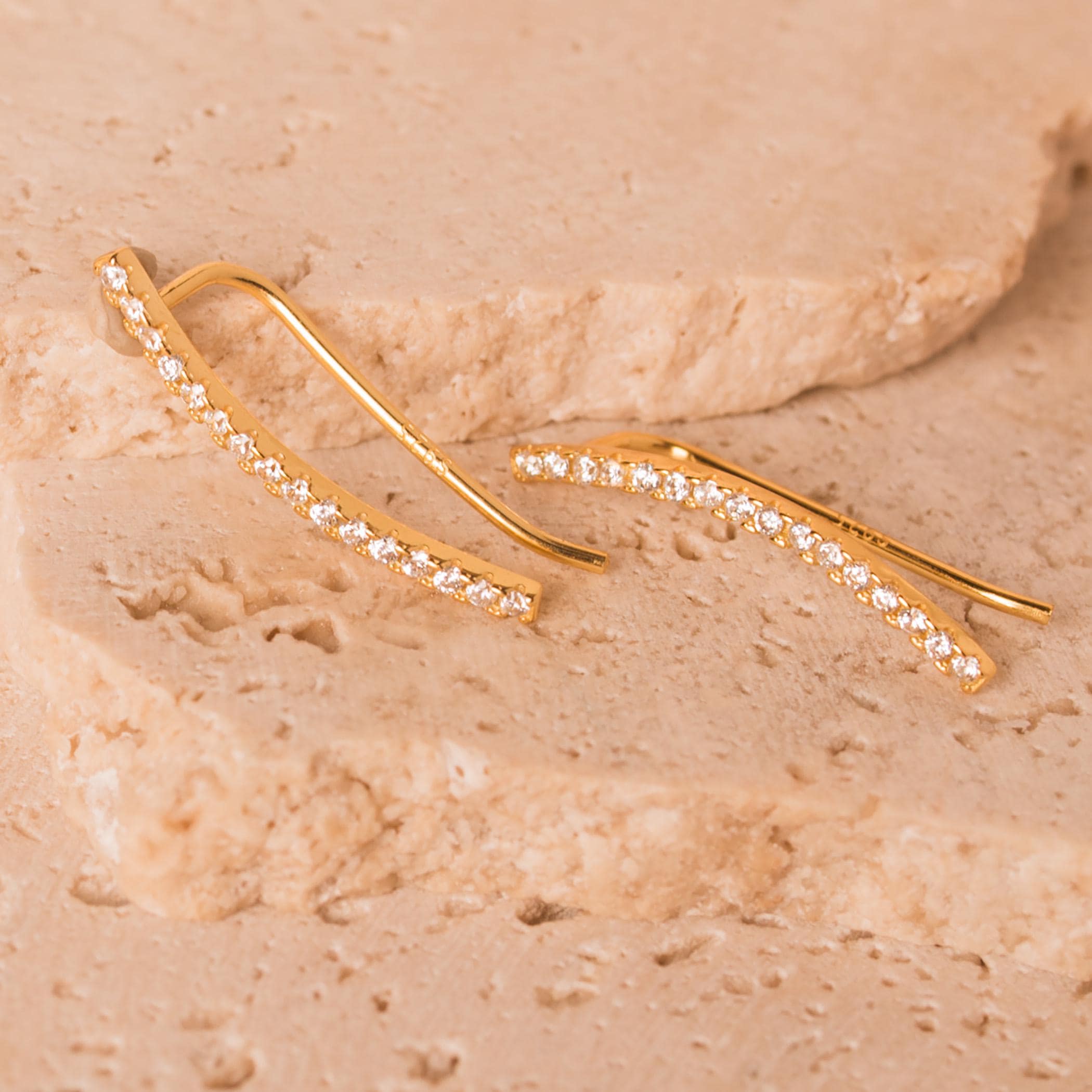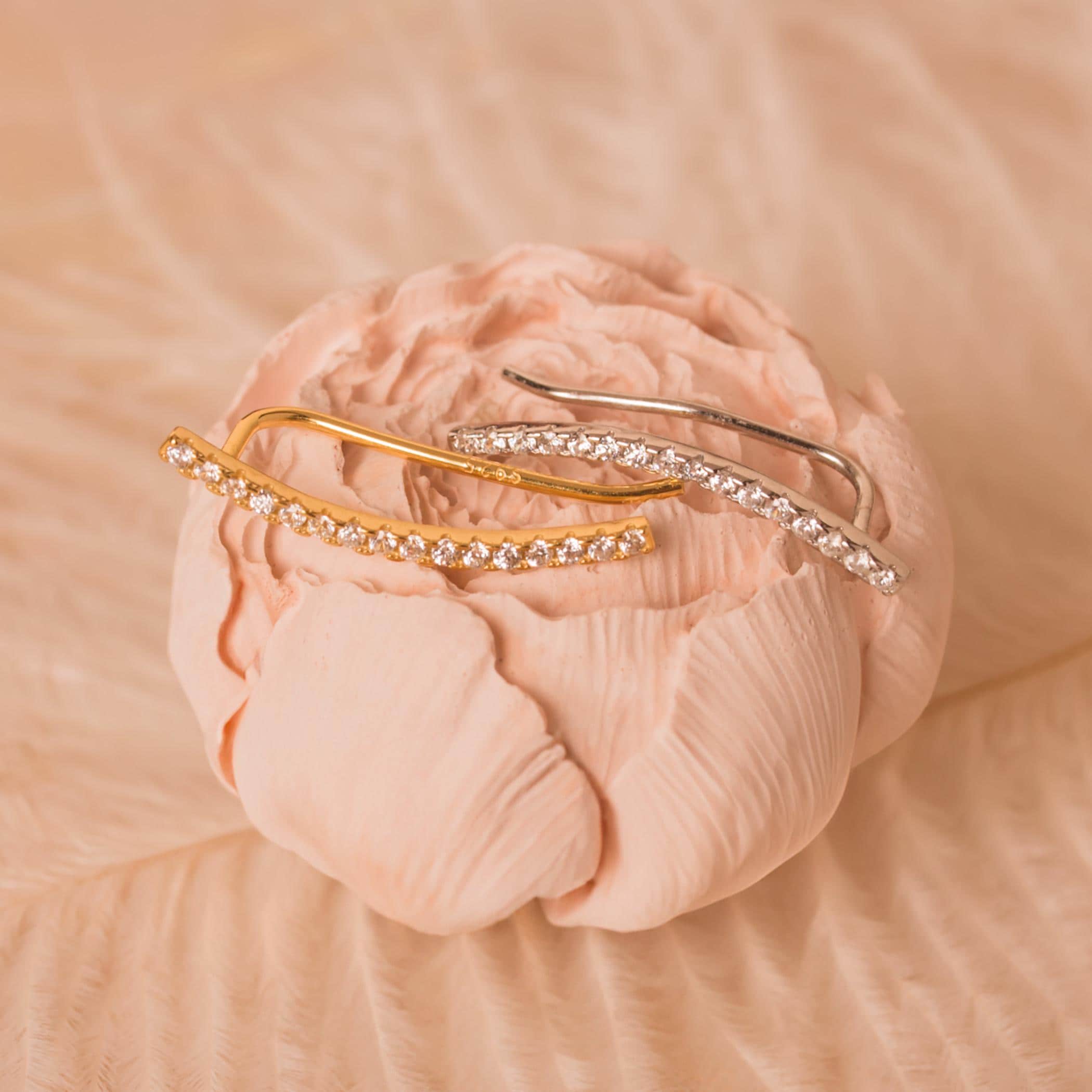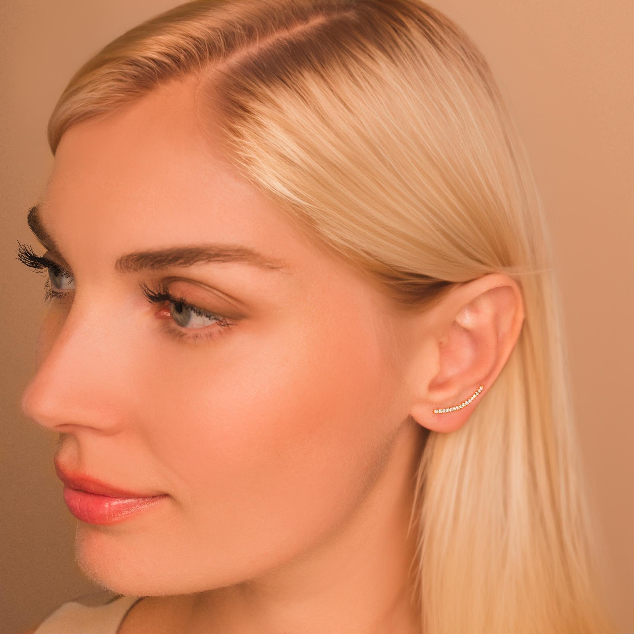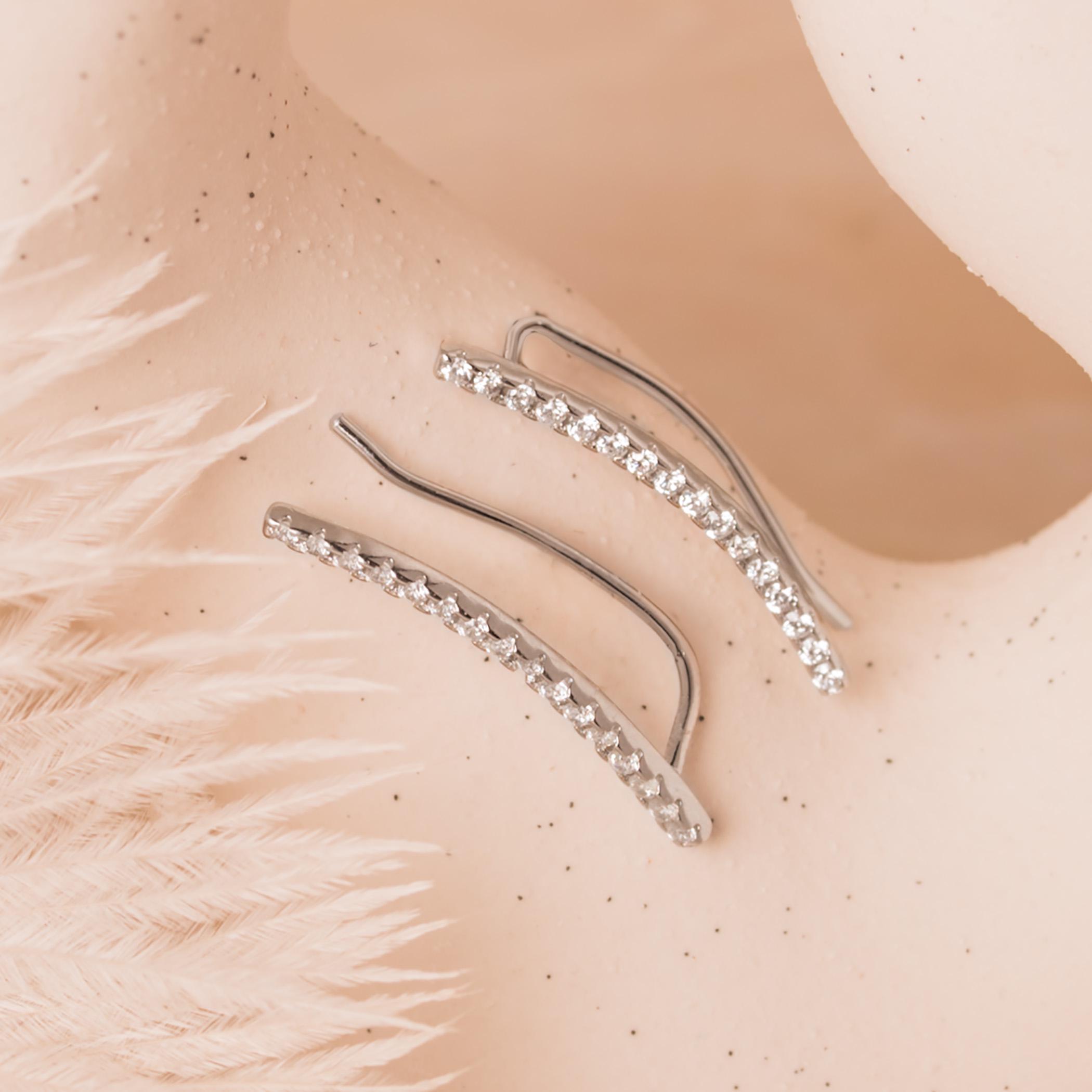 Dainty Thin Climber Earrings • Pave Ear Crawler • 18K Gold Vermeil or Sterling Silver