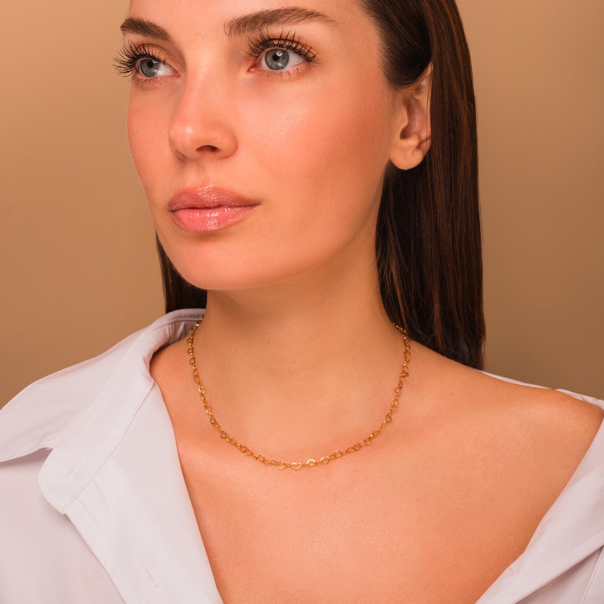 A modern twist on a romantic classic — this Heart Link Chain Necklace adds subtle charm and shine to any look. Crafted from waterproof, hypoallergenic stainless steel with a gold or silver finish, it’s designed for effortless everyday wear. The delicate heart links catch the light beautifully and layer perfectly with your favorite chains. A timeless piece that blends sentiment with simplicity — perfect for gifting or keeping close to your heart.