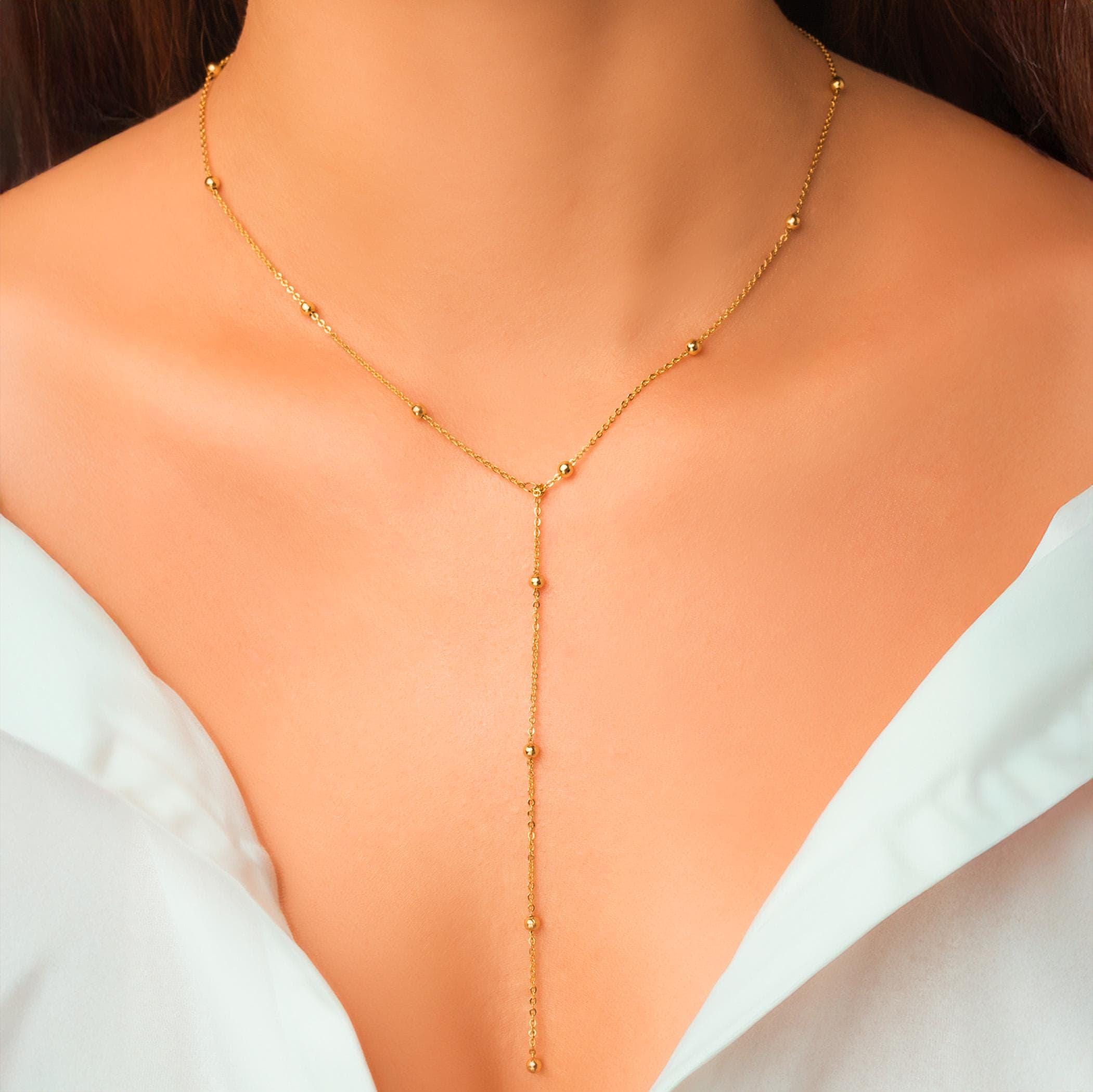 Lariat Satellite Necklace Beaded Chain Drop Bridesmaid Necklace Best Bridesmaid Proposal Box Gift Idea Wedding Party Favors Y Necklace