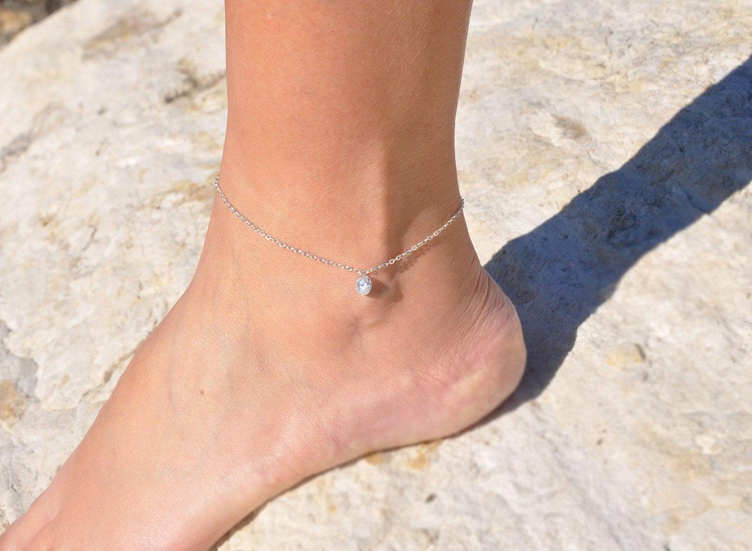 The CZ makes this anklet. The way the sun brightens up the CZ is beautiful. Reasonable shipping time and better than the computer can capture.