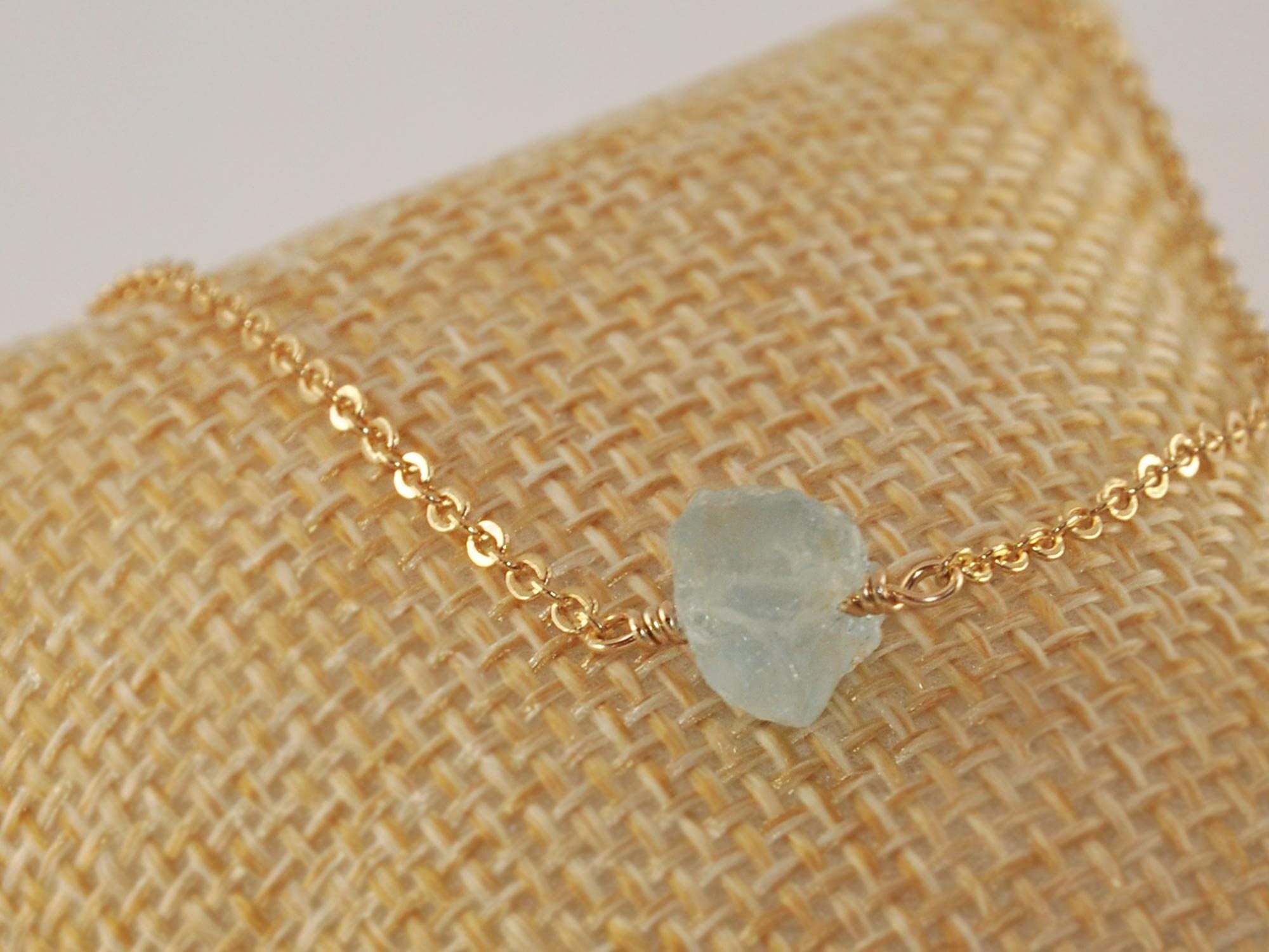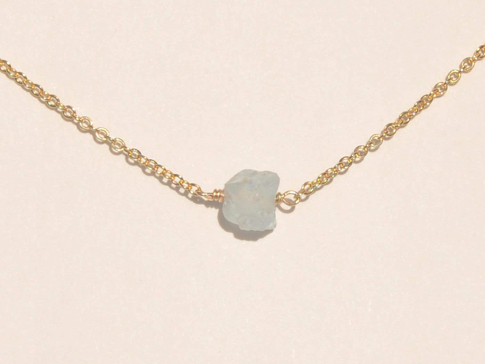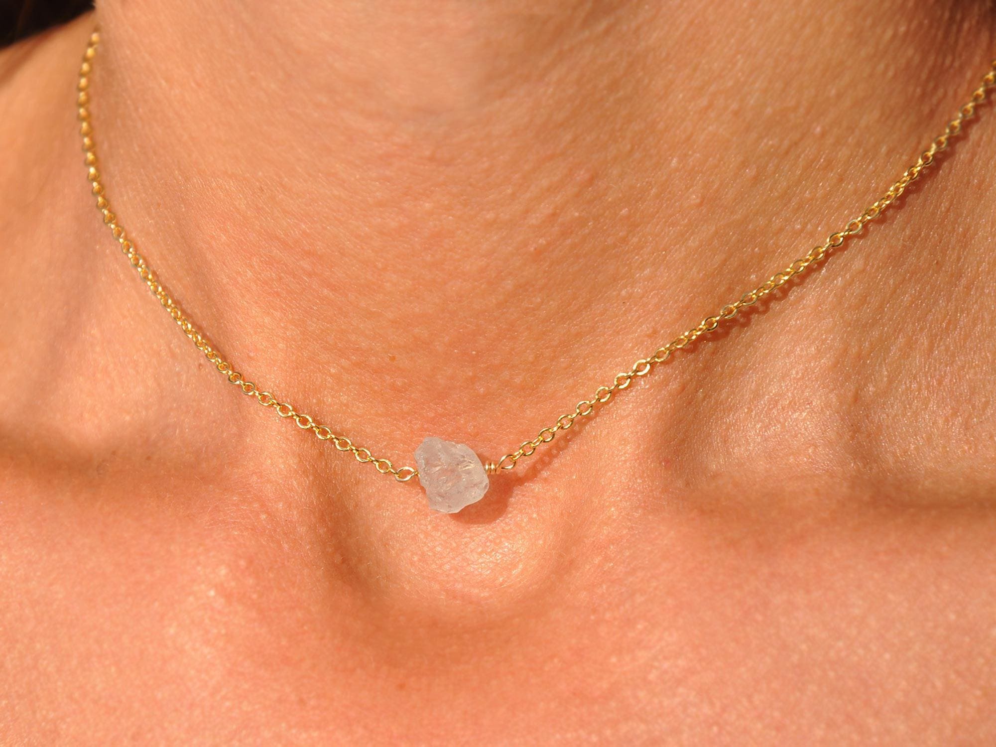 Natural Raw Aquamarine Choker Necklace in Sterling Silver Gold or Rose Gold by SeaSide Motifs Best Bridesmaid Proposal Box Gift Idea