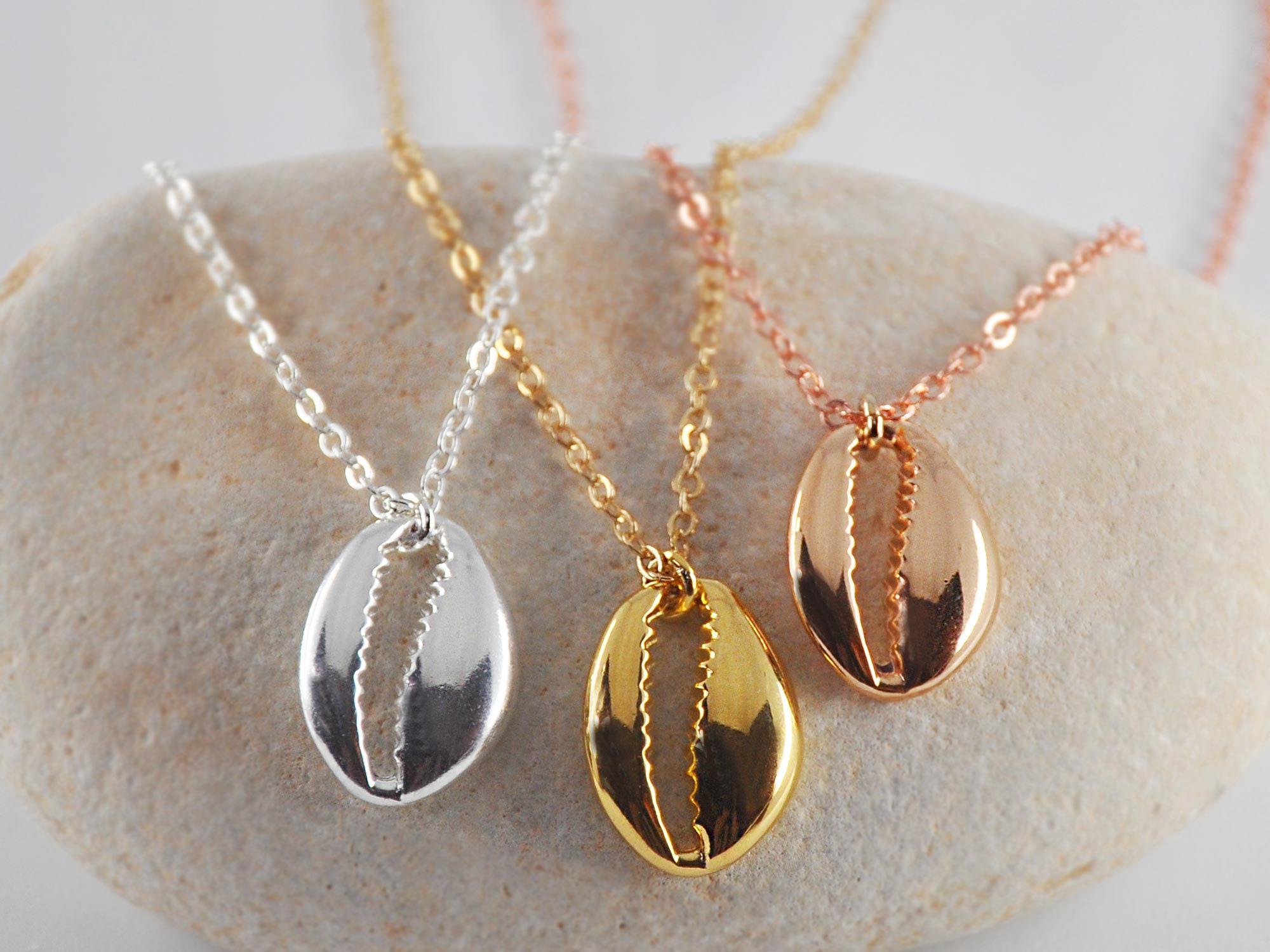 - 24K gold, rose gold or sterling silver dipped (high quality plating) cowrie shell, measure 3/4" (2cm)