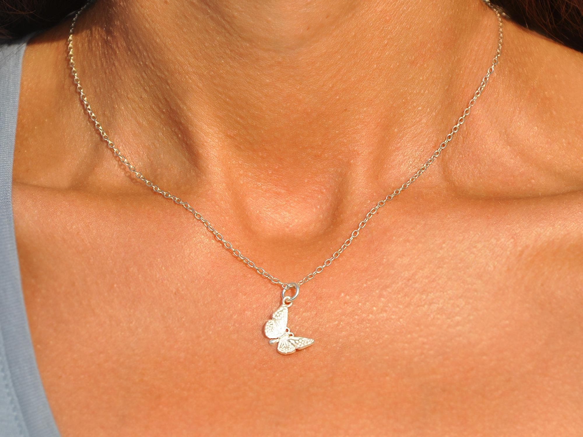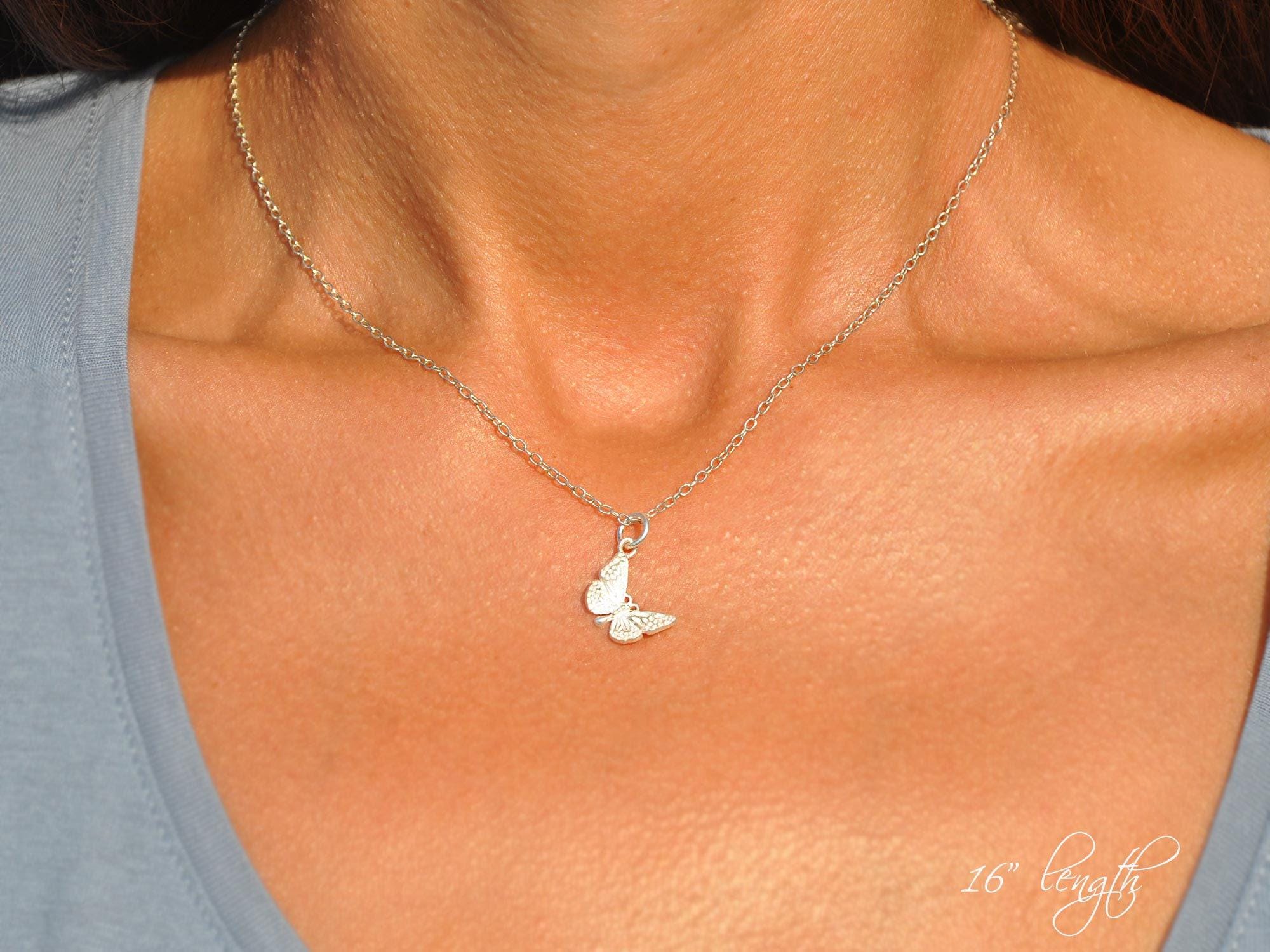 Butterfly Necklace in Sterling Silver by SeaSide Motifs | Minimalist Butterfly Charm Necklace, Silver Summer Necklace, Jewelry Gift for Her
