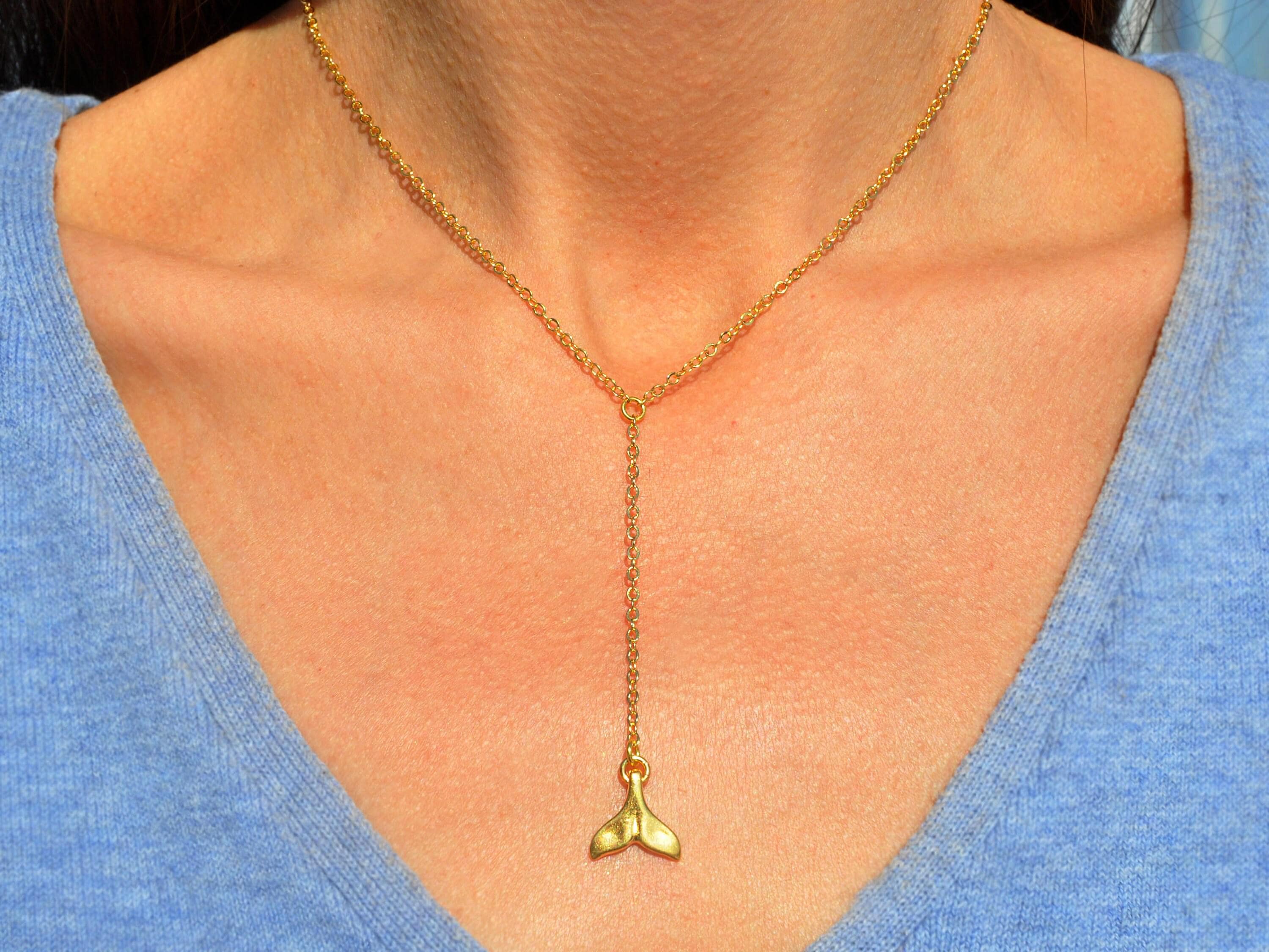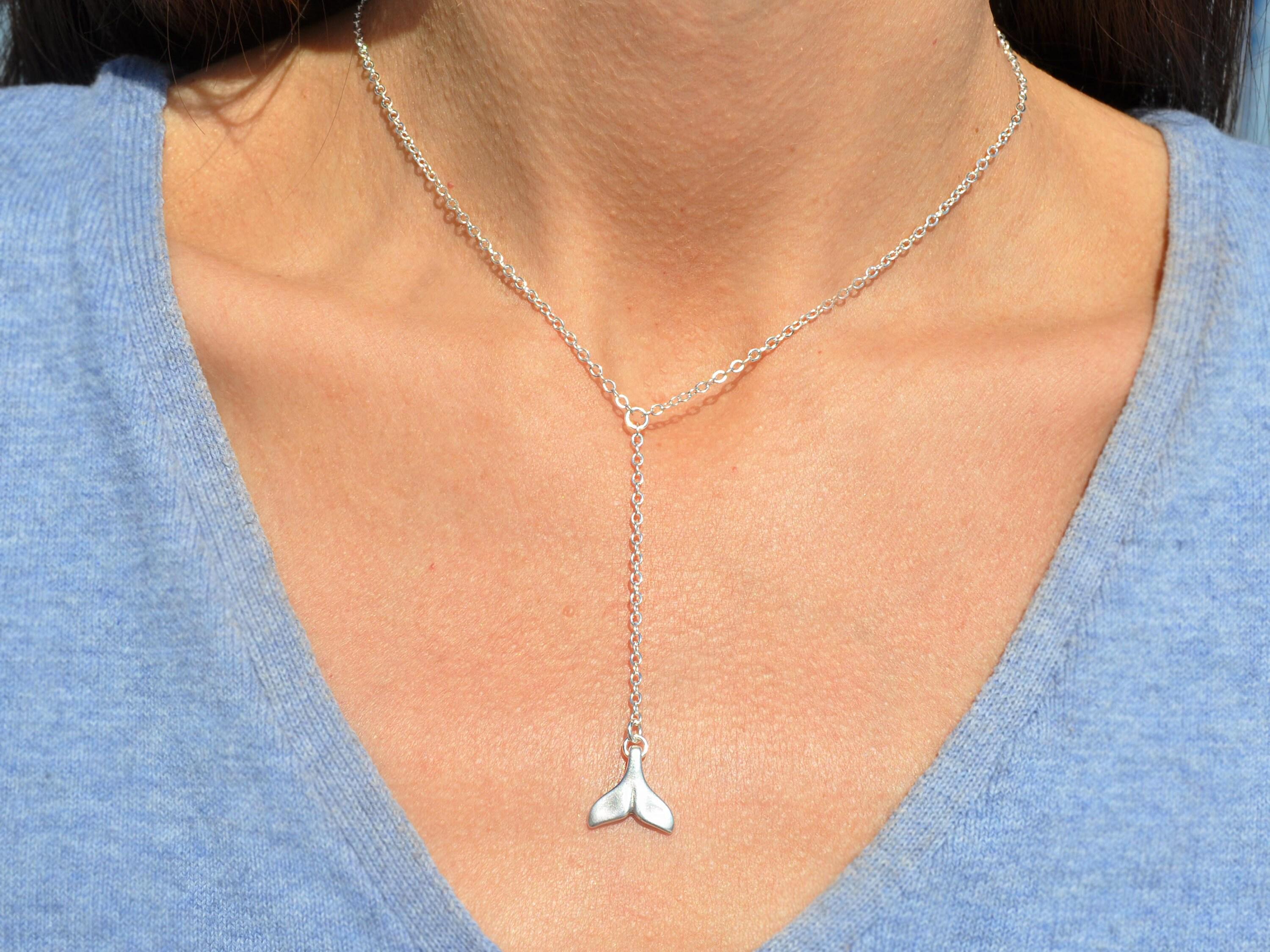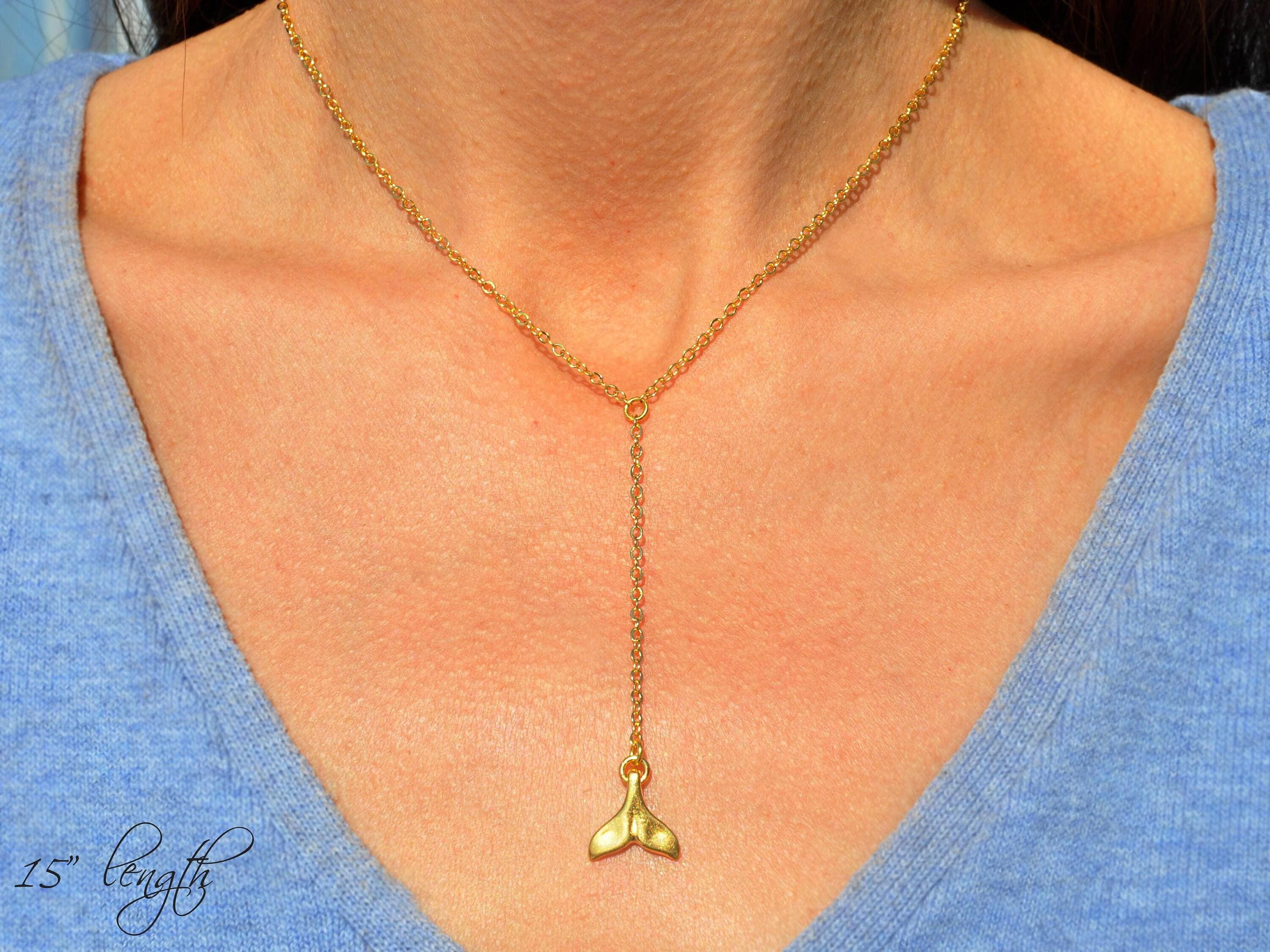 Tiny Whale Tail Drop Necklace ♡